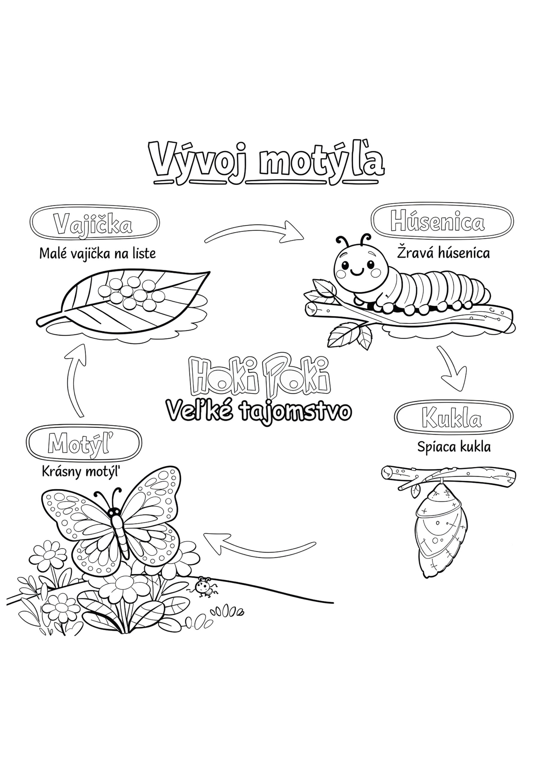 - Pracovný list vývoj Motýľa: čierno biely na vymaľovanie